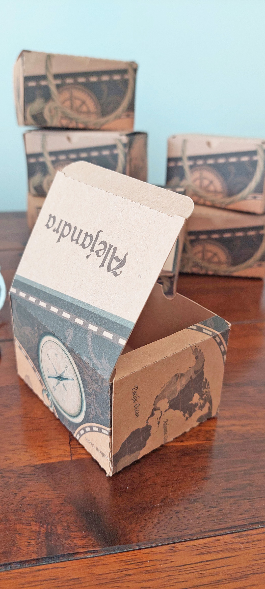 Die Box kann ganz nach Wunsch befüllt werden – mit kleinen Entdecker-Accessoires, symbolischen Elementen oder persönlichen Überraschungen. Durch das natürliche Design im Vintage-Stil eignet sich die Verpackung sowohl für Kinder als auch für Erwachsene.